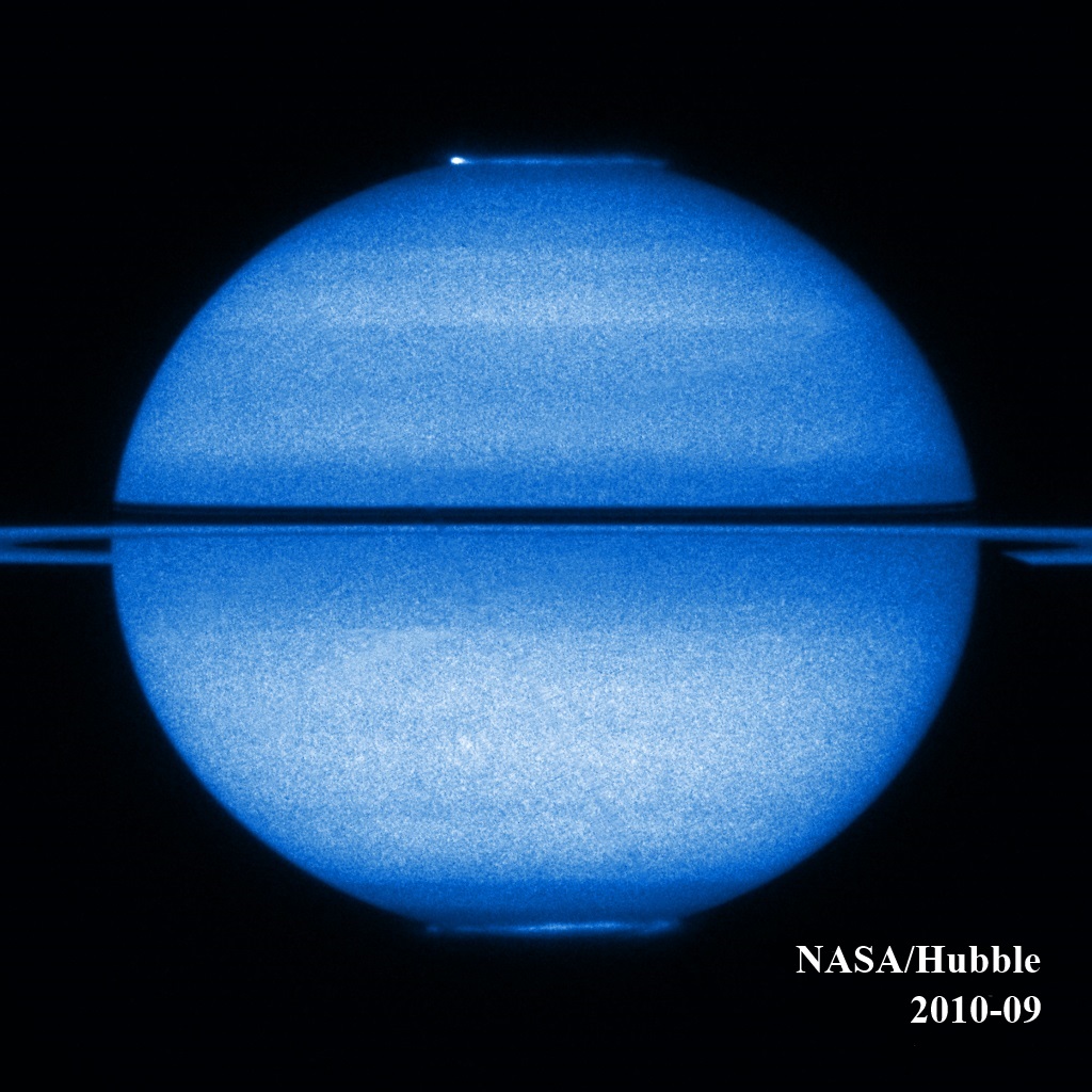 The bright ring of light at the southern pole of Saturn is an aurora. Discovering a fleeting aurora on Saturn was a "lucky break"; fortunately, the space-based Hubble Telescope in 2004 was aimed at the right place at the right time. Credits: NASA, ESA, J. Clarke (Boston University), and Z. Levay (STScI)